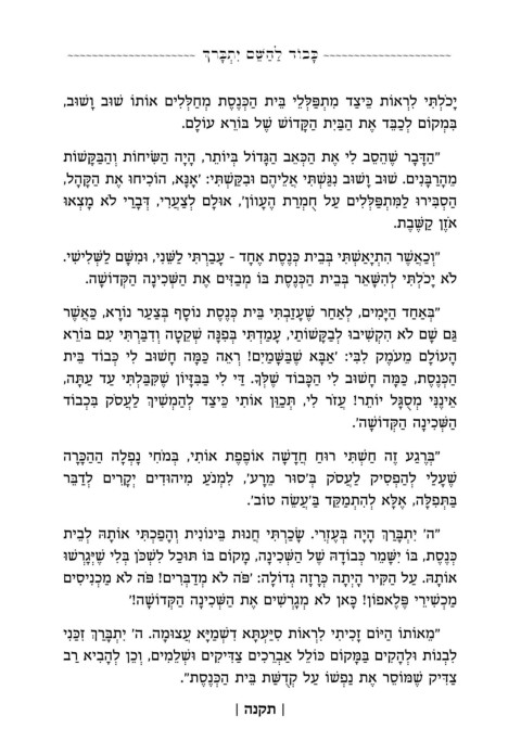 ."תסנכּה תיבּ תשּׁדק לע וֹשׁפנ תא רסוֹמּשׁ קידּצ ַ