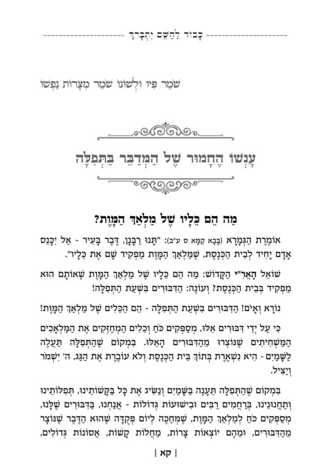 ."וילכּ תא םשׁ דיקפמ תומּה אלמּשׁ ,תסנכּה תיבל דיחי םדא ָ