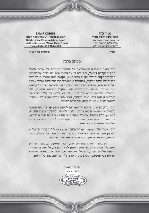 Author Responsa " Nezer Cohen" book דועו 'ןהכ רזנ' ת"וש ס"חמ