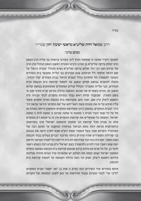 .םש ןייע תושרדמ יתבו תויסנכ יתב ולא " וניתונכשמ וכילשה ןואגה ברה הילע ינב יתוארב יבריקב יביל ץלעו יתחמש 'ה יבהוא יר י קיו יבוהאל