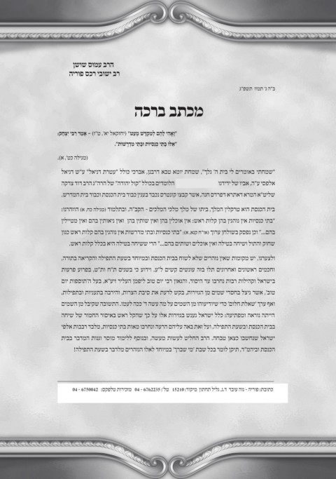 ! הליפתה תעשב רבדלמ םירהזנה ולאל דחוימב 'ךרבש ימ' תבש לכב רמול ןקית , ד"מהיבו תסנכה