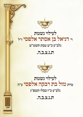 תמשנ יוליעל ל״ז יספלא רתסא ןב לאינד ׳ר ט״משת תבט ט״כ ע״בלנ .ה.ב.צ.נ.ת תמשנ יוליעל ה״ע יספלא הקבר תב לזמ תרמ ג״פשת ולסכ ז״כ ע״בלנ .ה.ב.צ.נ.ת 109
