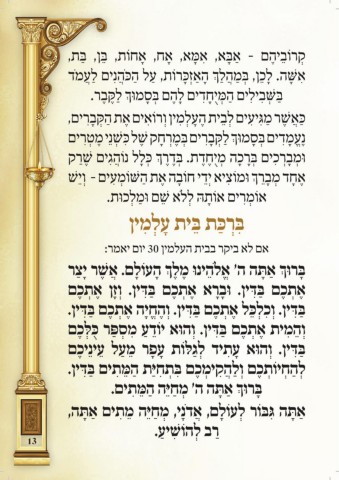 דֹמ ֲ ע ַ ל םיִנ ֲ הֹ ּכ ַ ה ל ַ ע ,תֹור ָּכְז ַ א ָ ה ך ַ ל ֲ ה ַ מ ְּב ,ן ֵ כ ָ ל .ה ָ ׁ ּ ש ִ א