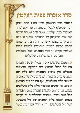 הרכזא תושעל םיגהונ ןכו .הרובקה םוימ יעיבשה