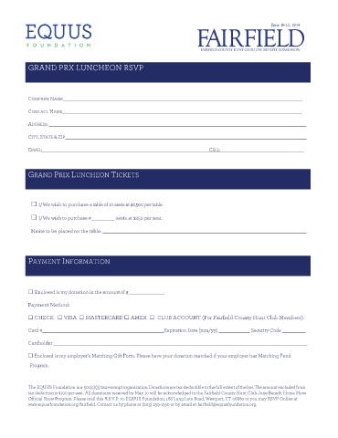 Official Show Program. Please mail this R.S.V.P. to: EQUUS Foundation, 168 Long Lots Road, Westport, CT 06880 or you may RSVP Online at