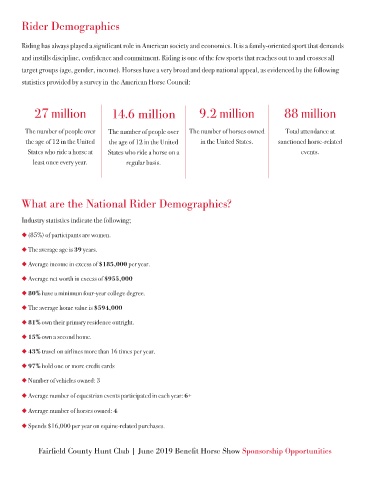 target groups (age, gender, income). Horses have a very broad and deep national appeal, as evidenced by the following