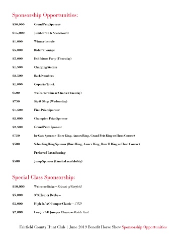 Fairfield County Hunt Club | June 2019 Benefit Horse Show Sponsorship Opportunities