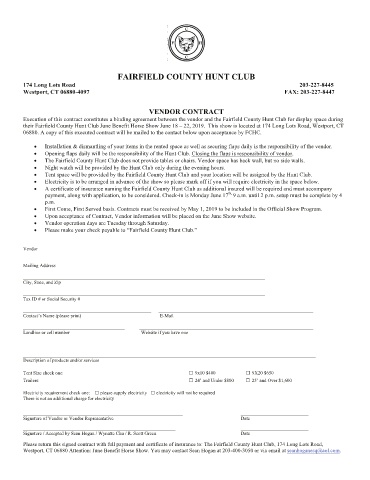 Execution of this contract constitutes a binding agreement between the vendor and the Fairfield County Hunt Club for display space during