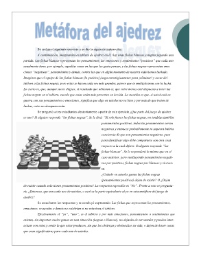 partida. Las fichas blancas representan los pensamientos, las emociones y sentimientos “positivos” que cada uno