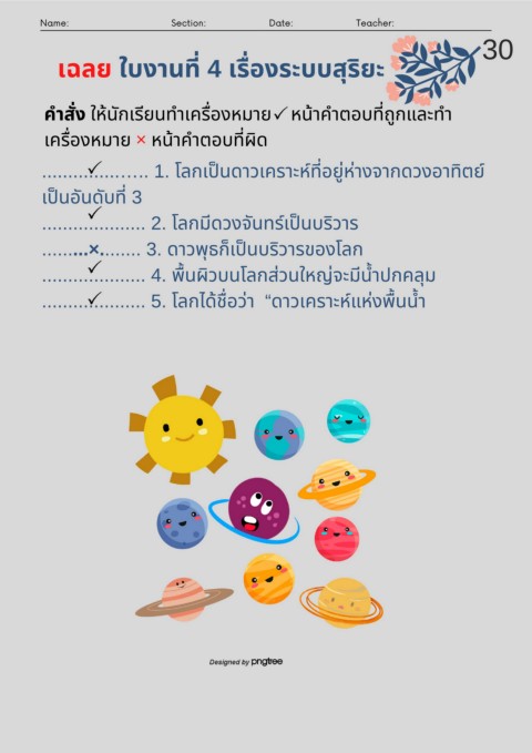เฉลย ใบงานที 4 เรืองระบบสุริยะ