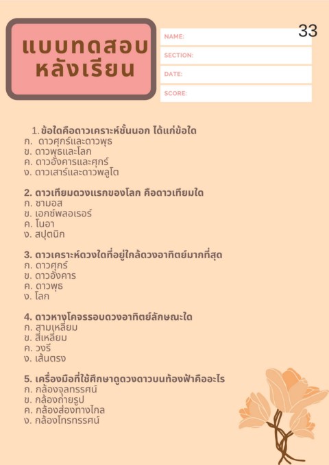 1. ข้อใดคอดาวเคราะหชั นนอก ไดแกข้อใด