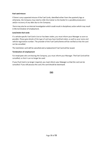 For employees who are leaving the Company, you must inform your Manager. The Fuel Card will be