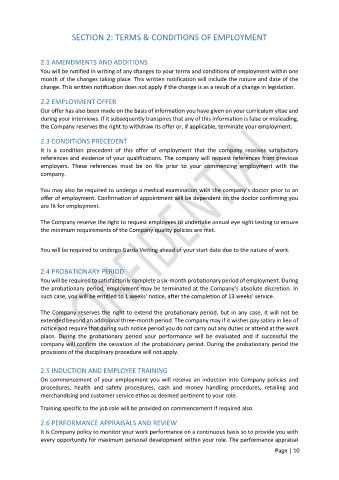 SECTION 2: TERMS & CONDITIONS OF EMPLOYMENT
