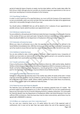 Social Welfare (Consolidation) Act, 1993 the minimum period of maternity is extended if necessary by