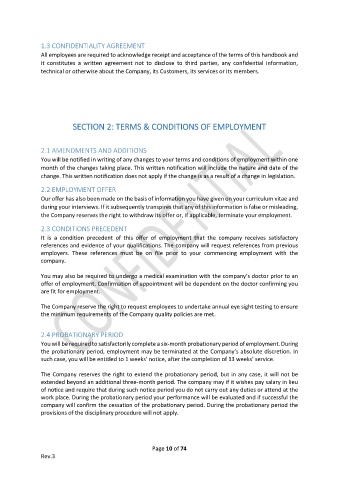 SECTION 2: TERMS & CONDITIONS OF EMPLOYMENT