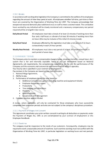 hours are covered by the Organisation of Working Time Act 1997. The Company acknowledge that