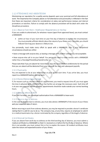 2.12.1 Absence from Work – Notification Requirements on the Day