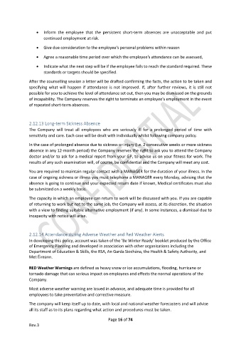 • Inform the employee that the persistent short-term absences are unacceptable and put