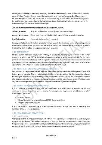 occur. If a Red Weather Alert is issued during the course of a normal working day, Management