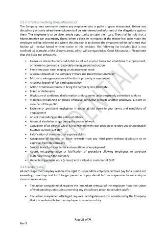 The Company may summarily dismiss any employee who is guilty of gross misconduct. Before any