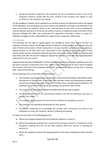 The employee has the right to appeal against any disciplinary action taken against him/her. An