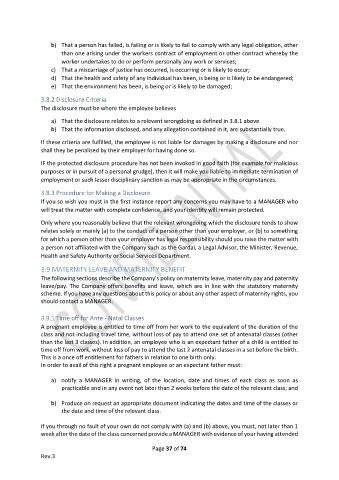 The following sections describe the Company's policy on maternity leave, maternity pay and paternity