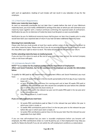 maternity leave, you must notify a MANAGER in writing of the date on which you will commence your