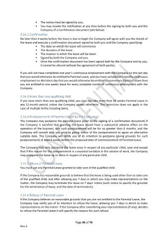 The Company may postpone the parental leave (prior to the signing of a confirmation document) if