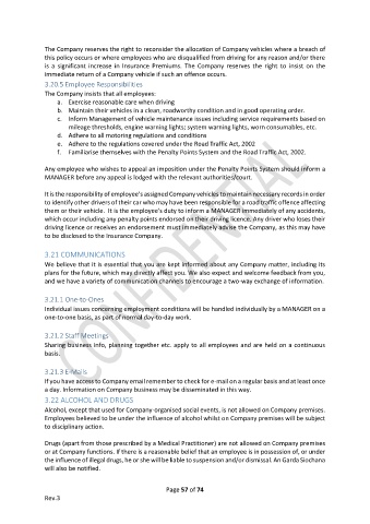 The Company reserves the right to reconsider the allocation of Company vehicles where a breach of