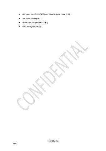 • Compassionate Leave (3.12) and Force Majeure Leave (3.13) • Smoke-Free Policy (6.1) • Breaks and rest periods (2.10.1) • DIFC. Safety Statement Page 67 of 74 Rev.3