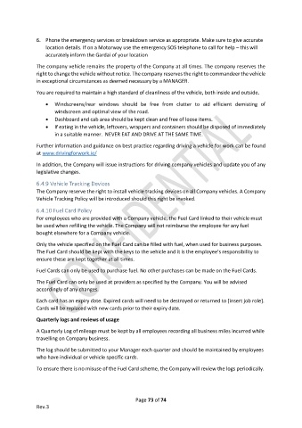 In addition, the Company will issue instructions for driving company vehicles and update you of any