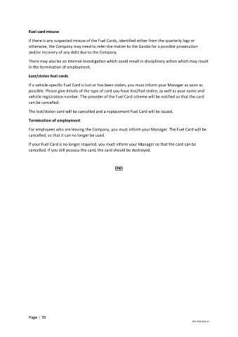 For employees who are leaving the Company, you must inform your Manager. The Fuel Card will be