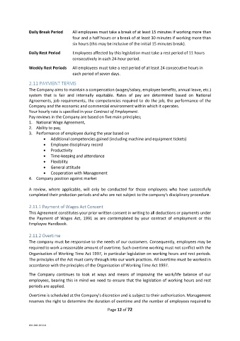 Daily Break Period All employees must take a break of at least 15 minutes if working more than