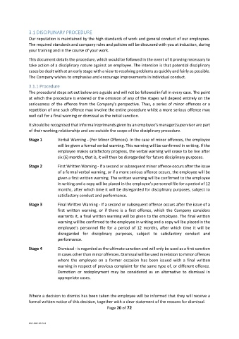 Stage 1 Verbal Warning - (For Minor Offences). In the case of minor offences, the employee