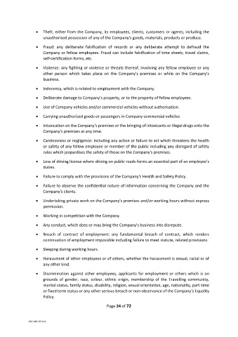 • Theft, either from the Company, its employees, clients, customers or agents, including the