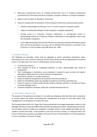 • Using the Company's computer system for unauthorised personal use.
