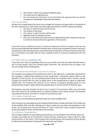 to refuse the Parental Leave it will specify the reasons for such refusal.