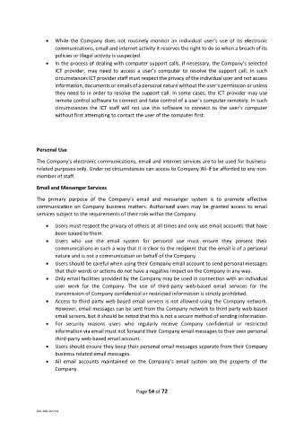 • While the Company does not routinely monitor an individual user’s use of its electronic
