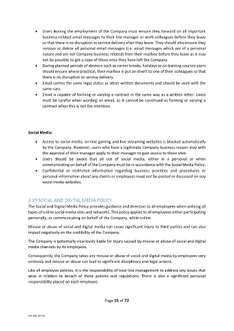communicating on behalf of the Company must be in accordance with the Social Media Policy.
