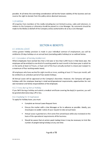 made to the Media on behalf of the Company unless authorised to do so by a Line Manager