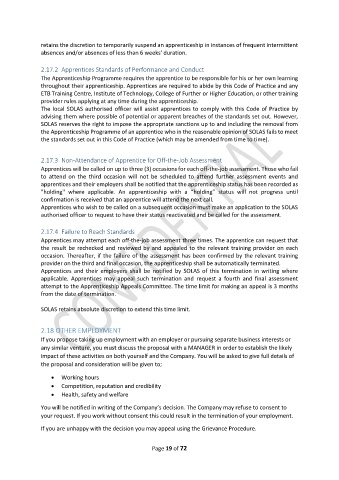 the Apprenticeship Programme of an apprentice who in the reasonable opinion of SOLAS fails to meet