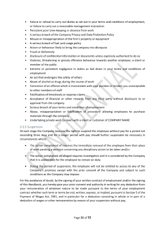 At each stage the Company reserves the right to suspend the employee without pay for a period not