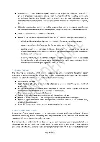 or fixed term status or any other serious breach or non-observance of the Company's Equality