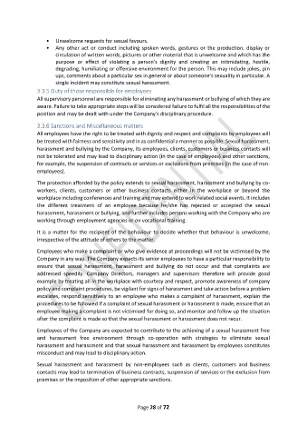 Employees of the Company are expected to contribute to the achieving of a sexual harassment free