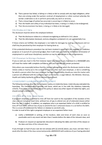 The following sections describe the Company's policy on maternity leave, maternity pay and paternity