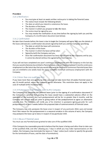 • You must give at least six weeks written notice prior to taking the Parental Leave.