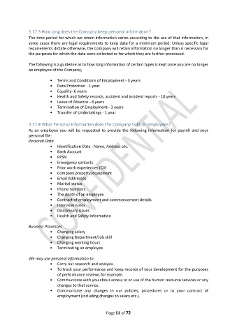 3.17.4 What Personal Information does the Company hold on employees?