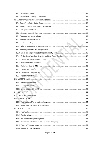 3.9 MATERNITY LEAVE AND MATERNITY BENEFIT ............................................................................ 38