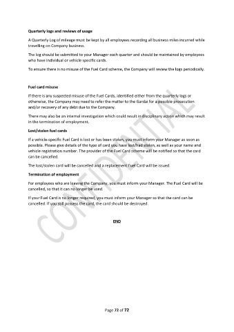 To ensure there is no misuse of the Fuel Card scheme, the Company will review the logs periodically.