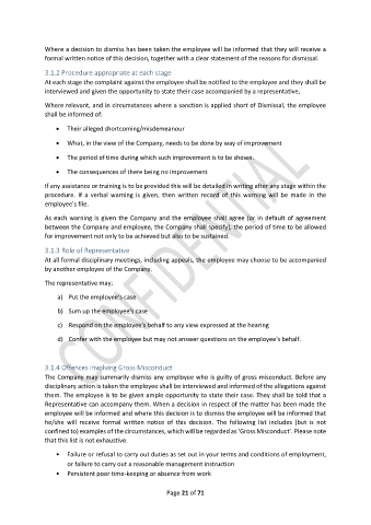 employee will be informed and where this decision is to dismiss the employee will be informed that